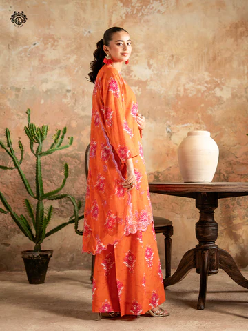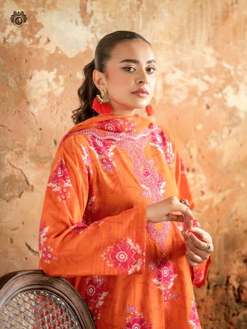 - Duppata:Β Digital Printed Bamber Chiffon SequinΒ Embroidered Cut-Work