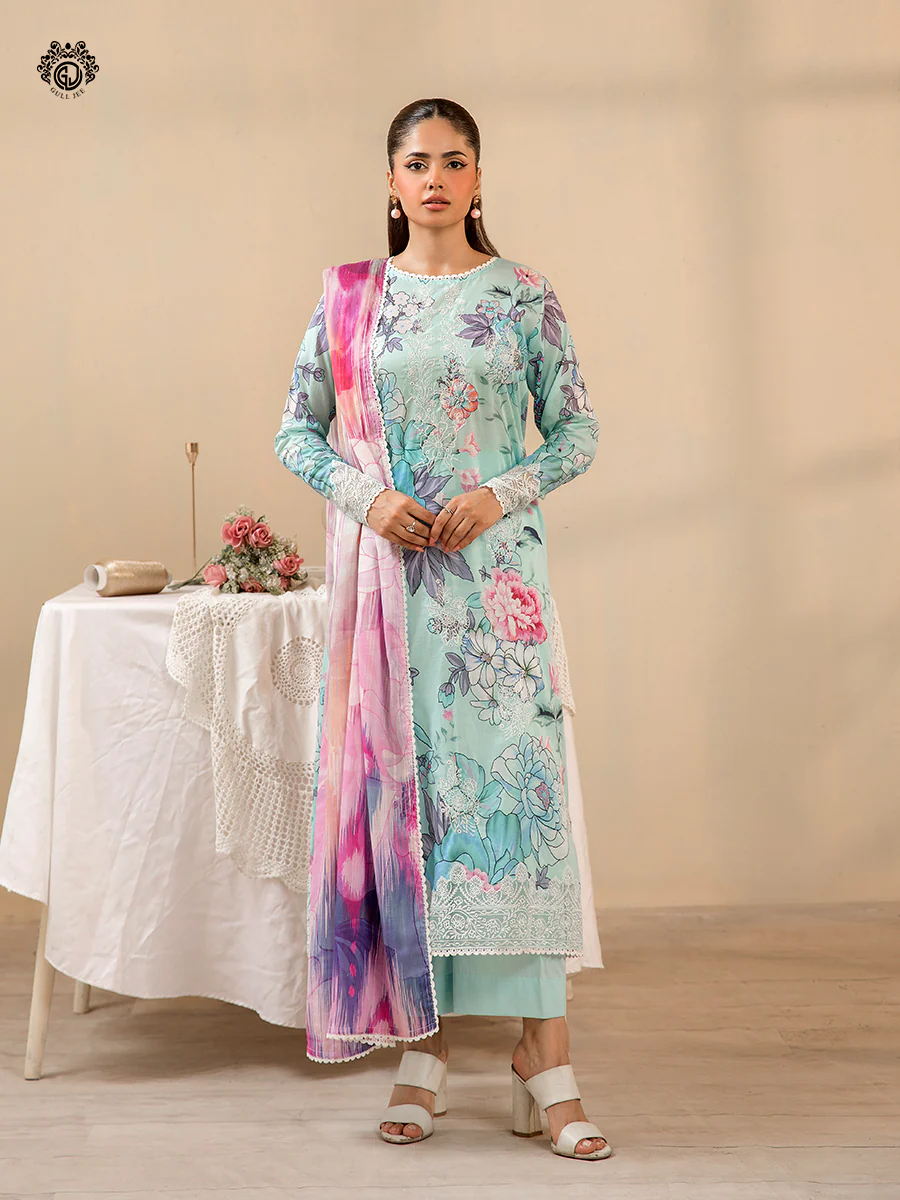 - Front:Β Digital Printed Lawn Embroidered