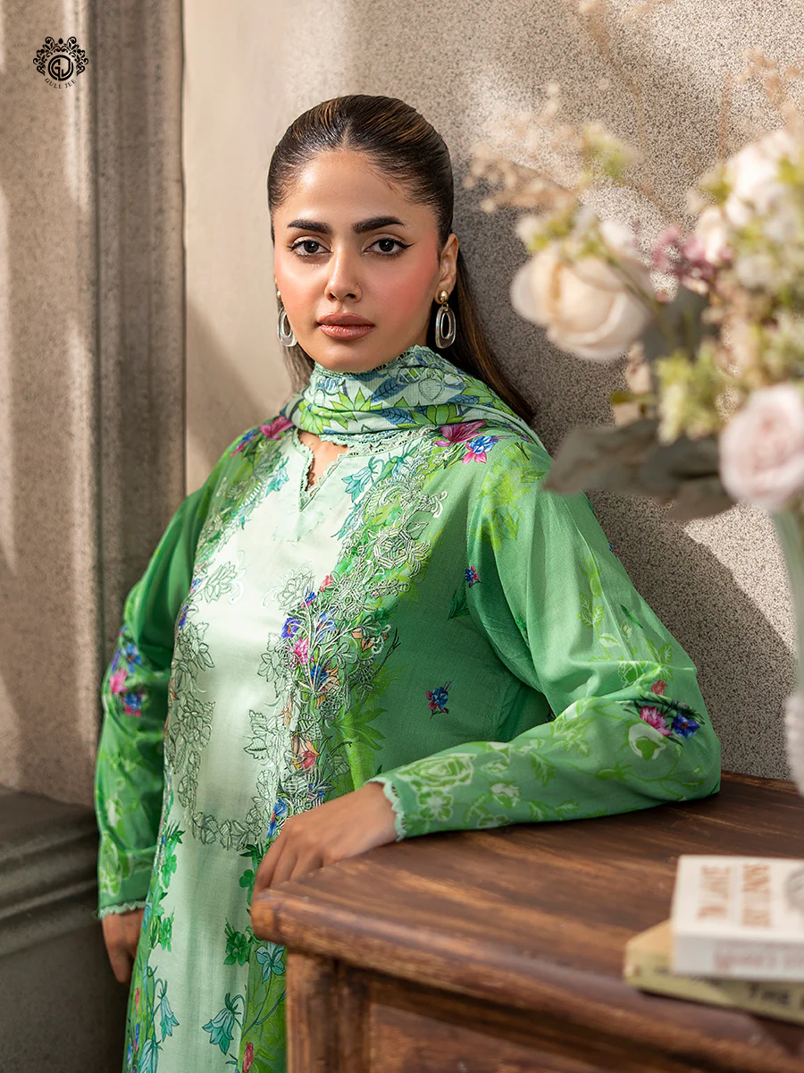 - Front:Β Digital Printed Lawn Embroidered